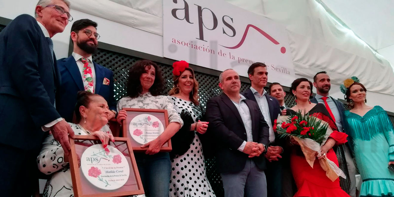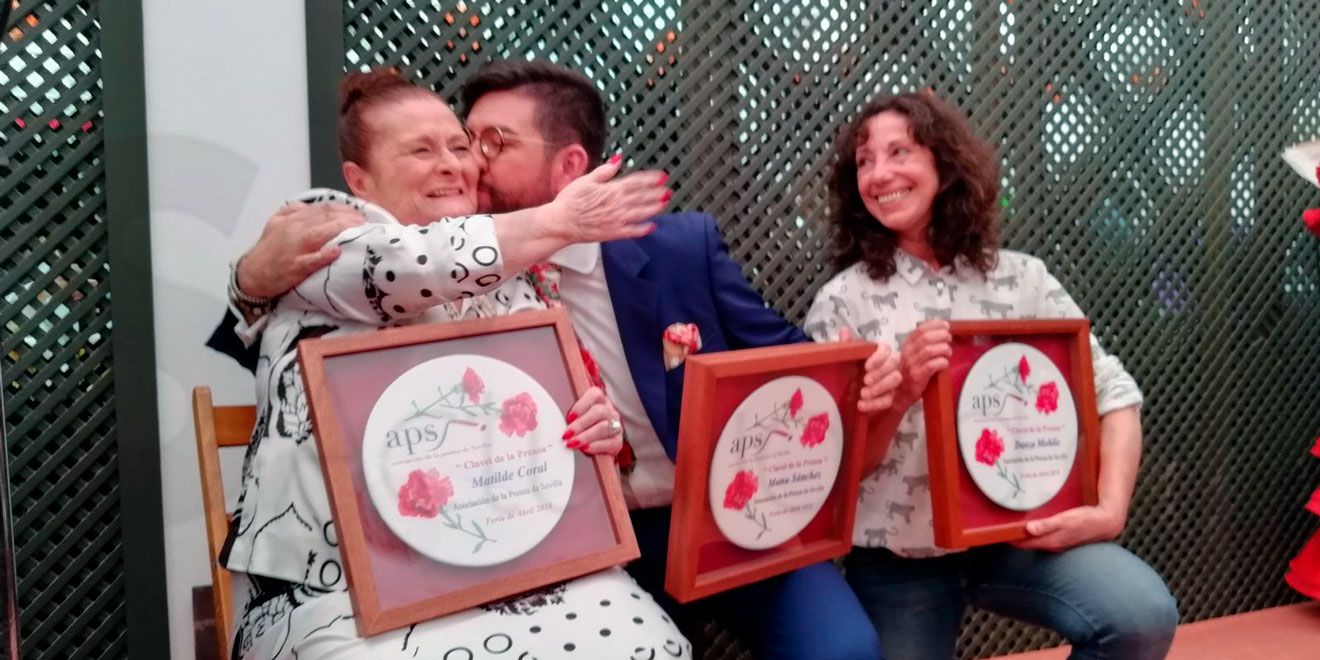 La Asociación de la Prensa de Sevilla ha concedido este mediodía en su caseta en el Real de la Feria los Premios Claveles de la Prensa a Manu Sánchez, Matilde Coral y la asociación social Danza Mobile.