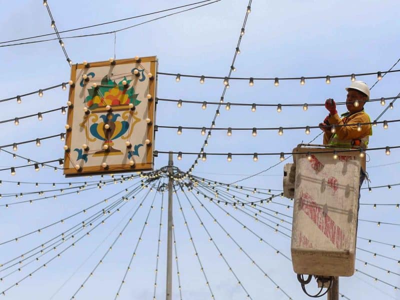 El Ayuntamiento asegura que se ha recolocado «el 80%» de los farolillos de la Feria