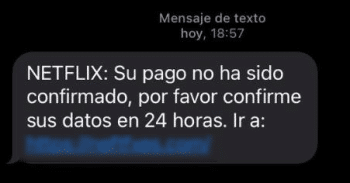 El motivo con el que pretenden alarmar a la víctima para que pulse sobre el enlace de la estafa es con supuestos problemas en el pago de la suscripción, así que si tienes cuenta de Netflix y te llega un mensaje de texto con un enlace, no se debe abrir bajo ningún concepto. El Instituto Nacional de Ciberseguridad ha sido el que ha alertado de este peligro a través de su página web.