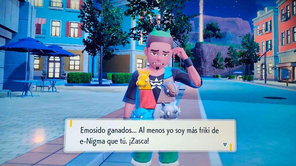 Las referencias a la cultura popular española también están presentes en el nuevo Pokémon. La icónica frase de Emilio en Aquí no hay quién viva de «Un poquito de por favor» o la viral pintada en la pared de «Emosido engañado» están presentes en los diálogos de los personajes.