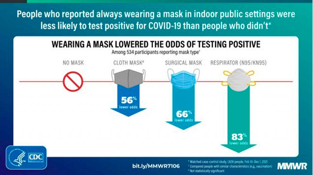 Efectividad de las mascarillas en espacios interiores. / Morbidity and Mortality Weekly Report