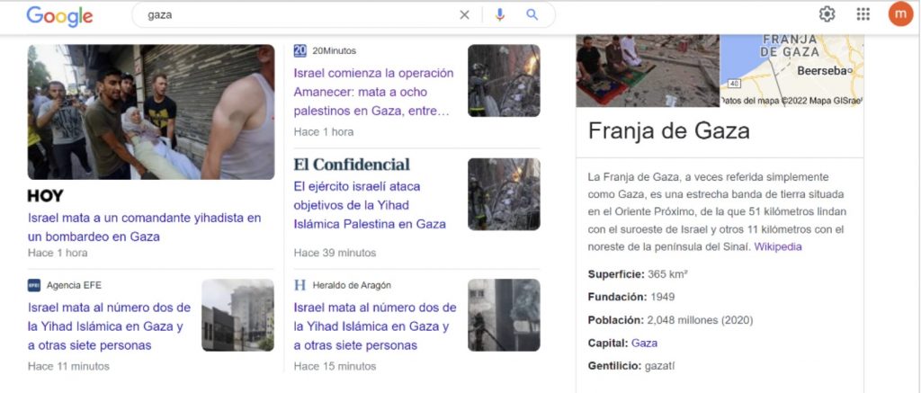 Nombre de la operación: Israel denomina a la operación “amanecer”. La palabra amanecer es el inicio del día, asociado al sol, nuevo día, esperanzas, belleza… Es decir, denomina a una operación criminal, con un nombre que como seres humanos tenemos asociado a un concepto positivo en sí mismo. Debemos de preguntarnos ¿Qué pasaría si la operación se llamase: bombas destructivas de las vidas palestinas? (por ejemplo), en este caso estaría más cerca de la realidad y todos nos quedaríamos impactados de ver como bombardean (otra vez) el territorio de Gaza.