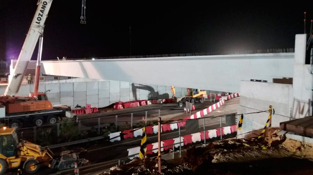 En la pasada madrugada las tres vigas de la estructura norte del enlace de las vías de gran capacidad, una de las dos proyectadas para salvar la autovía A-376.