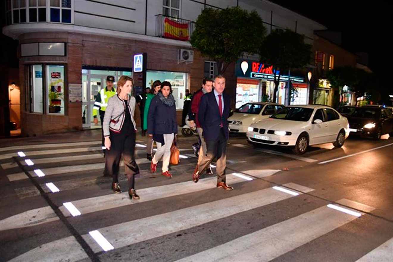 La Dirección General de Tráco (DGT) y la Policía Local de Tomares han verificado el funcionamiento de los nuevos pasos «inteligentes» de peatones instalados en el municipio, el «primero» de la provincia y uno de los primeros de toda Andalucía en contar con este equipamiento.
