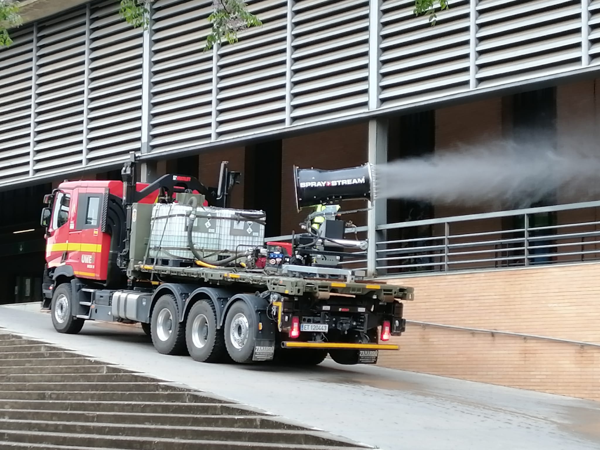 De igual modo, los equipos GIETMA y SGTB del BIEM II de la UME, con base en Morón, desempeñan una tarea crucial en la desinfección de centros sanitarios, asistenciales y residencias. Esta semana se ha actuado en distintos hospitales y centros de especialidades: Hospital Virgen Macarena, Hospital Virgen del Rocío, Chare de Écija, Hospital Comarcal de Osuna, Hospital San Juan de Dios en Bormujos, Hospital Nisa en Castilleja de la Cuesta, Hospital San Agustín, Hospital Virgen de Valme, Hospital de San Lázaro, Hospital Nuestra Señora de Fátima y Centro de Especialidades Virgen de Los Reyes.