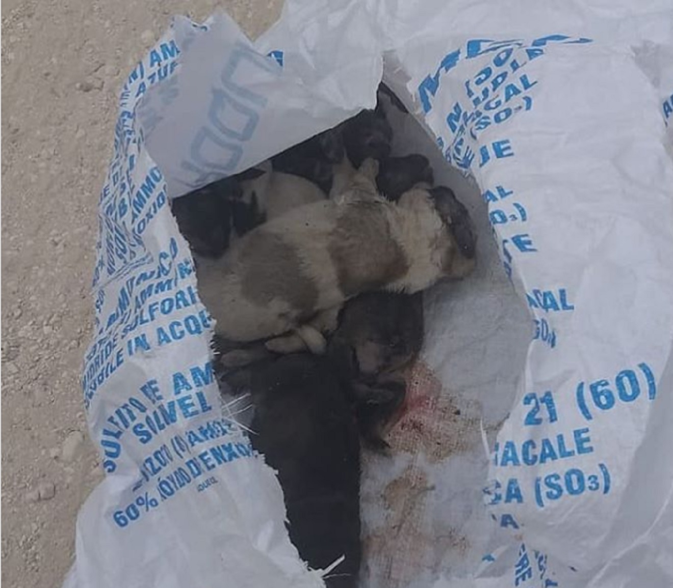 La protectora ha pedido colaboración ciudadano para tratar de identificar al autor de los hechos. En un comunicado emitido en redes sociales, explican que recibieron un aviso de un vecino sobre un saco que contenía a cinco cachorros. Los cachorros de «mastín o cruce» se encontraban en el interior de este saco cerrado en un camino rural. «Posiblemente incluso les dio golpes para que murieran, sufriendo y si no, asfixiados», denuncia la protectora.