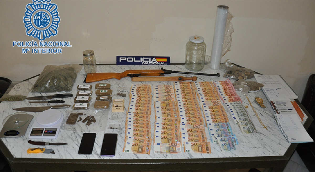 Durante los registros practicados además se han incautado cuatro armas prohibidas, ocho teléfonos móviles, una pistola de aire comprimido y más de 13.000 euros en efectivo, así como dos vehículos y diversa documentación.