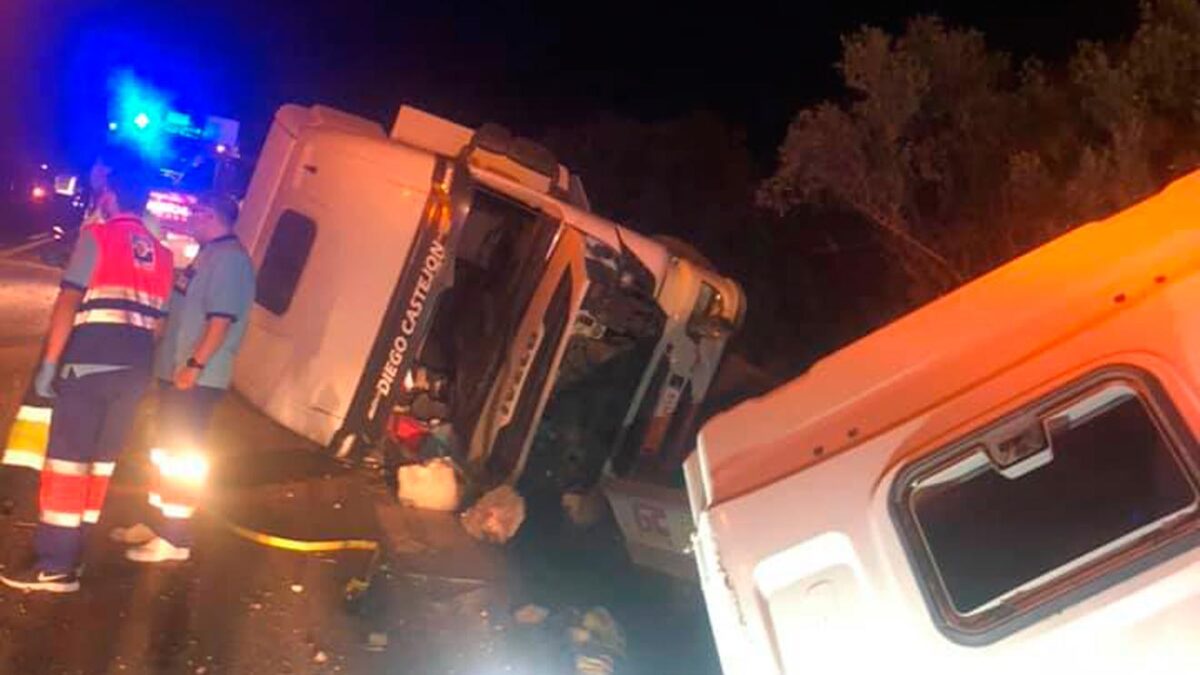 El accidente ocurrió cerca de las 21:45 horas. En ese momento, un ciudadano alertó al teléfono 112 de que dos camiones habían colisionado en el kilómetro 604 de la carretera N-IV. La sala coordinadora activó a la Guardia Civil de Tráfico y a los Bomberos de la Diputación. También a la Empresa Pública de Emergencias Sanitarias (EPES) y a Mantenimiento de la calzada.
