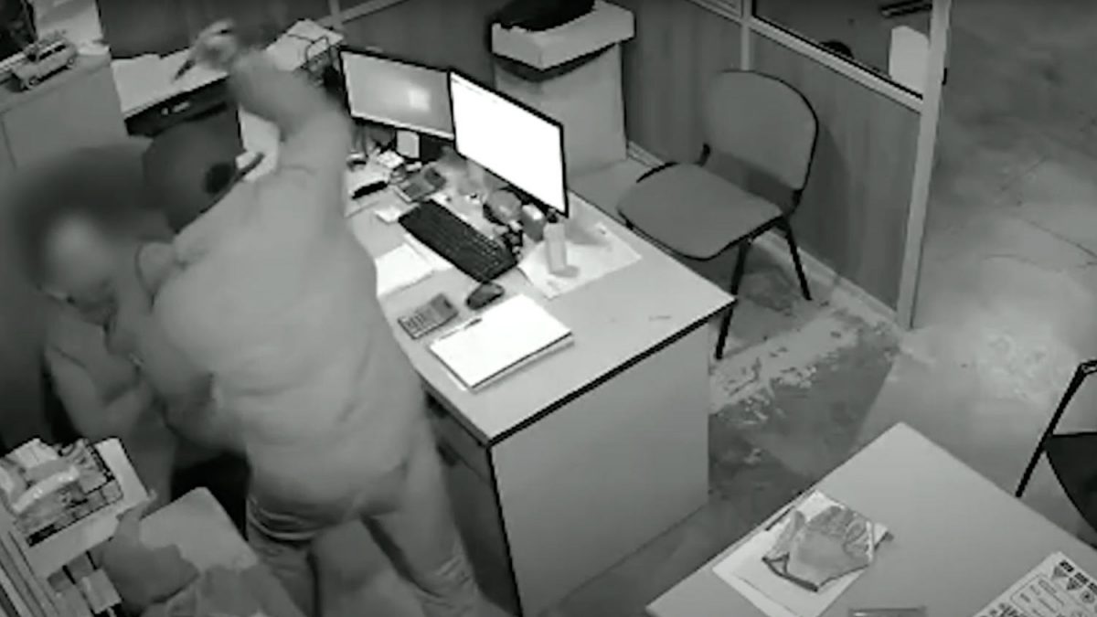 En la visualización de las cámaras del establecimiento aportada por el denunciante se observa en el primer fotograma el paso de un Peugeot 406 de color blanco, así como a un individuo que portando en la mano derecha un cuchillo accede hasta la oficina donde se encuentra el denunciante; que a continuación se abalanza hacia la víctima que se encontraba sentada, observándose cómo hace un movimiento para clavarle el cuchillo mientras se oye en las grabaciones «dame el dinero o te mato»; igualmente se aprecia como el autor coge a la víctima a la altura del cuello continuando con la mano alzada amenazándolo con el cuchillo.