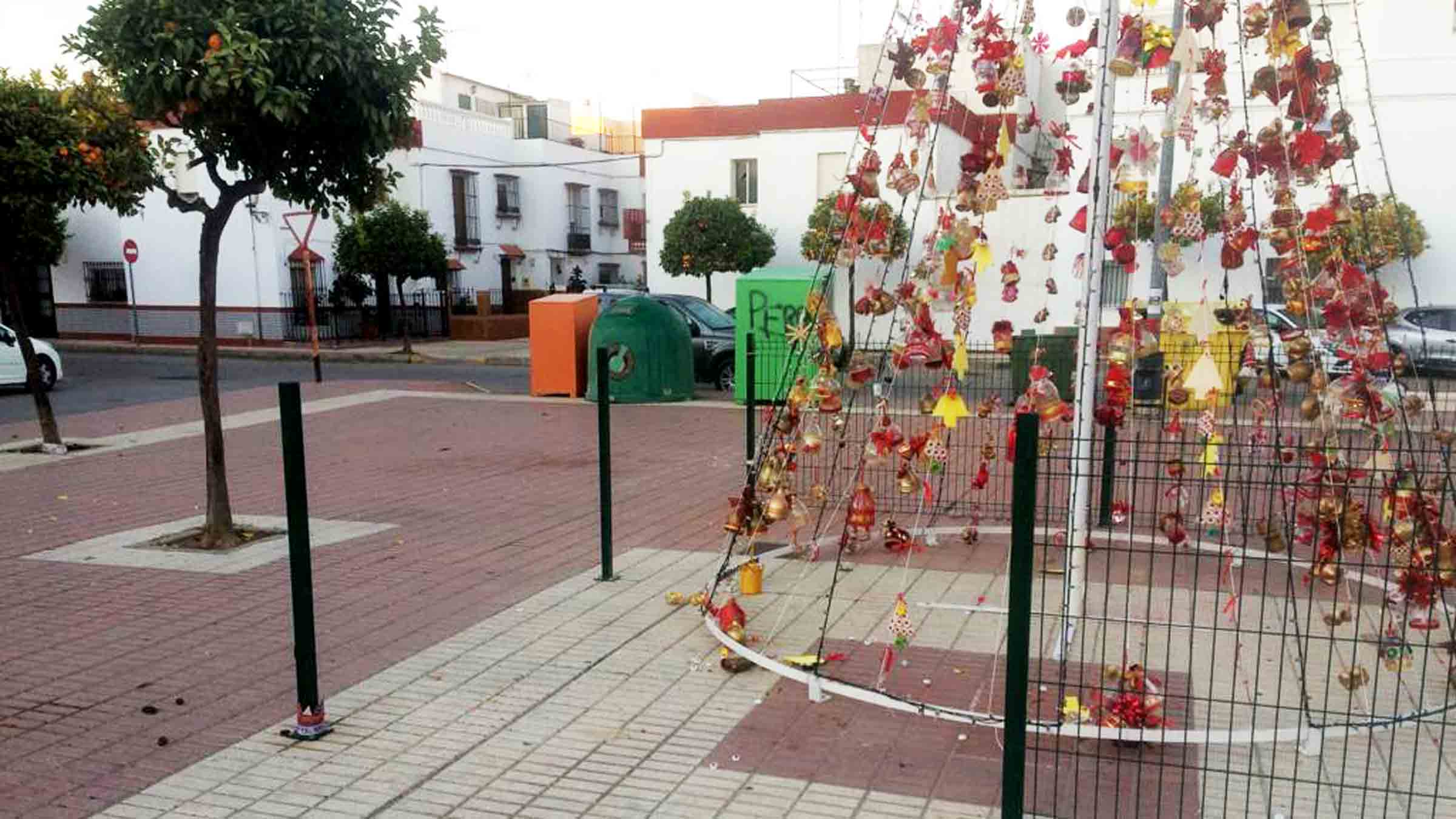 El Ayuntamiento de Los Palacios y Villafranca ha hecho un llamamiento «al civismo y la colaboración de la ciudadanía» tras el último acto vandálico cometido en el pueblo. Este lunes, la página de Facebook de Festejos, Turismo y Comercio de Los Palacios compartía unas imágenes en las que se podían ver los árboles de Navidad hechos por niños de los diferentes colegios del municipio, destrozados.