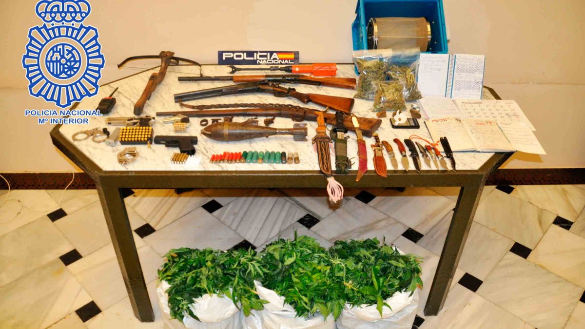 La investigación se inició el pasado mes de noviembre, una vez los agentes tuvieron conocimiento de la posible existencia de una plantación de marihuana, y culminó con tres entradas y registros en domicilios que se encontraban situados en el municipio sevillano de Osuna, las cuales fueron autorizadas por el Juzgado de Instrucción número dos de la localidad. Los agentes de la Policía Nacional intervinieron 150 plantas de marihuana, 260 gramos de cogollos, 62 gramos de hachís, dos armas largas, una pieza de artillería (mortero), un arma corta, diversas armas blancas y armas simuladas.