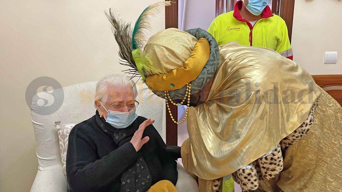 Yolanda Gálvez llevaba un tiempo preguntándose cómo alegrar el día de Reyes Magos a Manuela Portillo, una vecina de Arahal, de 94 años de edad, a la que cuida como auxiliar de ayuda a domicilio. La joven dice que ha recibido más de la anciana de lo que ella haya podido aportar a su vida. Verlas juntas es reconocer un lazo familiar. Por eso en estos días tan especiales, tenía que conseguir sorprenderla y no ha parado de hacer gestiones hasta que el Rey Baltasar apareció en su puerta para darle los regalos en mano. «Merece esto y mucho más porque ha tenido una vida larga pero con mucho sufrimiento», cuenta Yolanda.