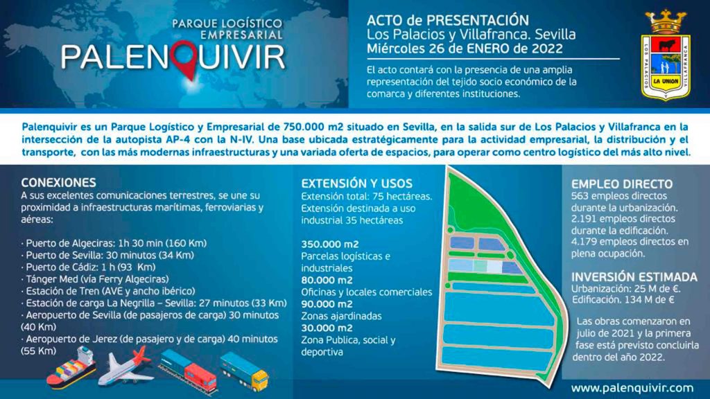 El proyecto Palenquivir abarca 75 hectáreas de terreno en la salida de la localidad hacia Cádiz, en un lugar estratégico para desarrollar la actividad de operadores logísticos en el suroeste andaluz y español. Su proximidad a la capital andaluza y a los grandes puertos de Algeciras y Cádiz, lo convierte en un punto equidistante entre los Corredores Europeos Mediterráneo y Atlántico. De hecho, a sus excelentes conexiones terrestres se une su proximidad a infraestructuras marítimas, ferroviarias y aéreas como son los puertos de Algeciras, Sevilla y Cádiz; los aeropuertos de Sevilla y Jerez de la Frontera o diferentes estaciones de tren AVE y ancho ibérico, además de su cercanía a la Estación de Carga La Negrilla a escasos 27 minutos.