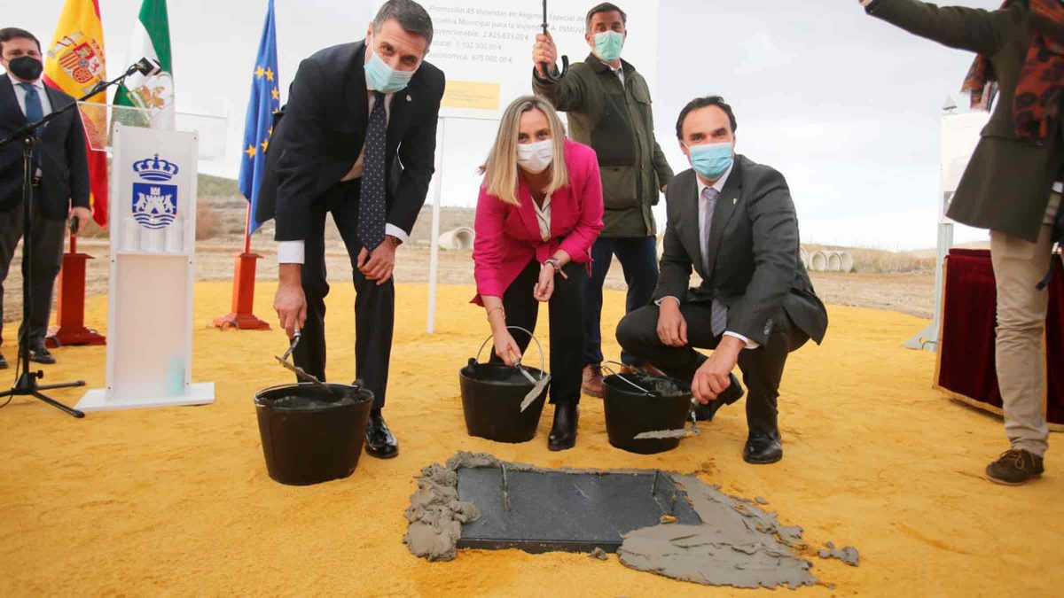 La consejera de Fomento, Infraestructuras y Ordenación el Territorio, Marifrán Carazo, ha asistido hoy, junto al alcalde de Lebrija (Sevilla), José Barroso, y el delegado del Gobierno de España en Andalucía, Pedro Fernández, al inicio de las obras de 45 viviendas en alquiler a precio asequible en este municipio del Bajo Guadalquivir que resultó beneficiaria de la segunda convocatoria del programa de ayudas de Fomento del Alquiler, financiado por el Plan Vive en Andalucía y el Plan Estatal de Vivienda. Esta subvención, de cerca de 1,8 millones de euros, costea el 63 por ciento del total de la obra, que asciende a más de 2,8 millones de euros.