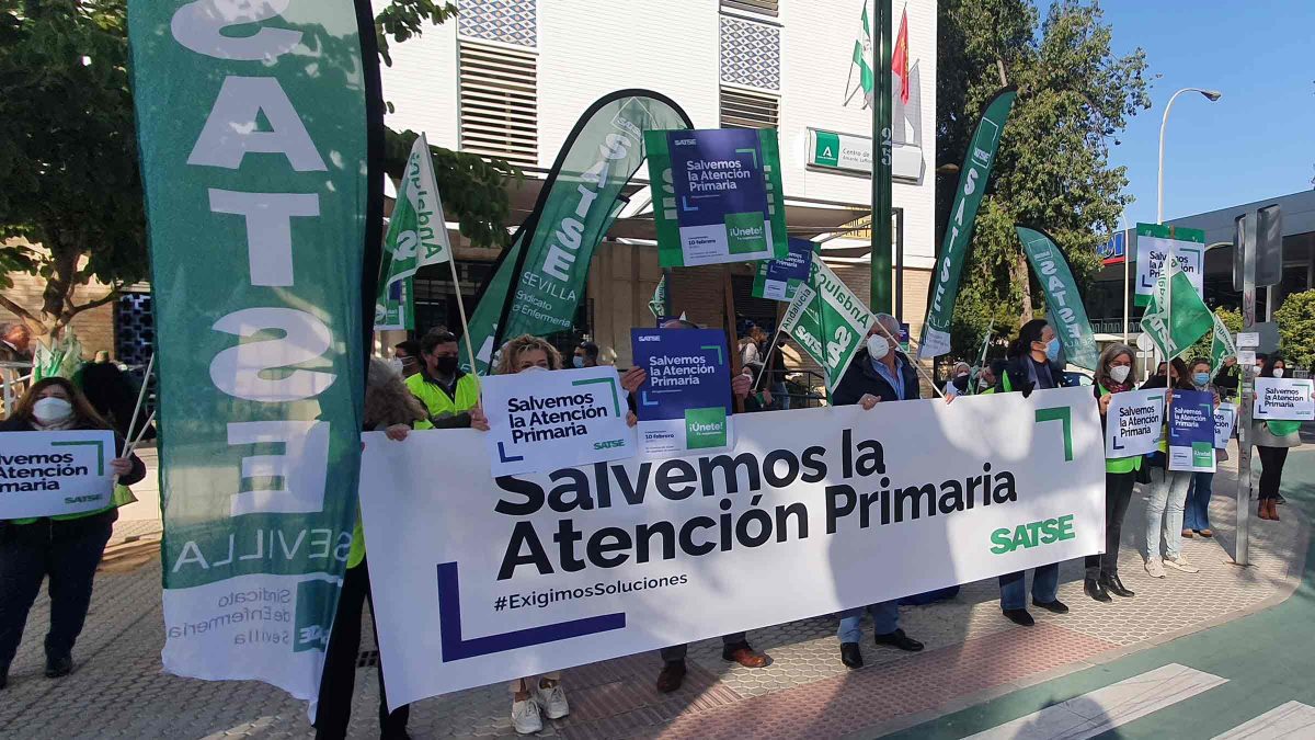 Enfermeras, enfermeros y fisioterapeutas se han concentrado hoy, jueves, en los centros de salud de toda Andalucía denunciar «la grave situación de deterioro y precariedad que sufre la Atención Primaria» y exigir a la Consejería de Salud y Familias que «no la abandone a su suerte» y mejore la atención sanitaria y cuidados que recibe el conjunto de la ciudadanía.