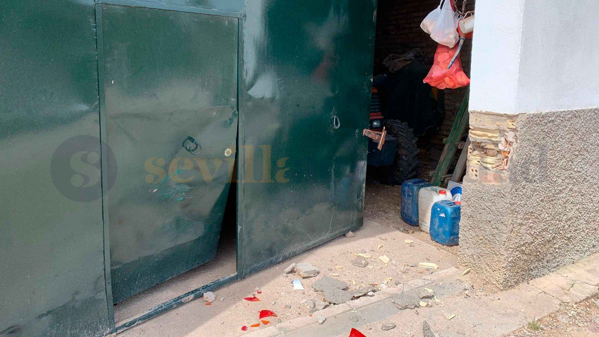 Una de las naves en la que han robado forzando la puerta con un vehículo. Carmen García.