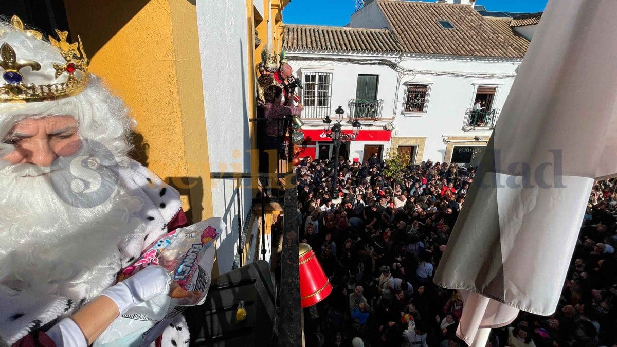 Este municipio situado en la zona oriental de la provincia de Sevilla tiene una tradición centenaria en la que todos los niños junto a sus padres se reúnen en la plaza del Ayuntamiento, donde sus majestades, desde los balcones, lanzan caramelos y paquetes de chucherías mientras esperan a las 12:00 horas.