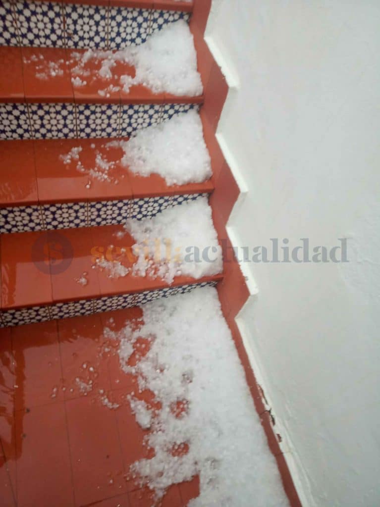 El aviso amarillo establecido este jueves por la Agencia Estatal de Meteorología en Sevilla ha dejado una fuerte granizada en Los Palacios, sorprendiendo a todos sus vecinos. Muchos de ellos han compartido en redes las imágenes de la lluvia, la tormenta y el hielo que ha descargado este frente durante la tarde del jueves.