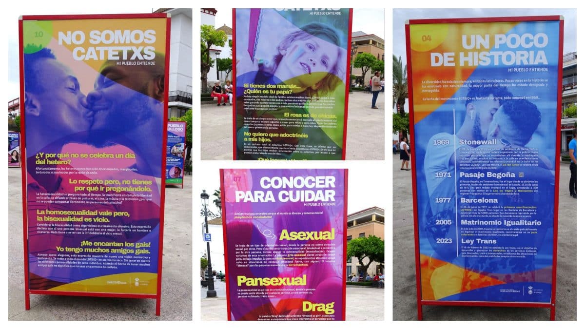Muchos municipios se vuelcan con el Orgullo y realizan actividades y exposiciones para conmemorar estas fechas, como el caso de Lebrija, que en la Plaza de España ha colocado una exposición formada por una serie de 20 carteles que lleva el nombre de «Mi pueblo entiende».