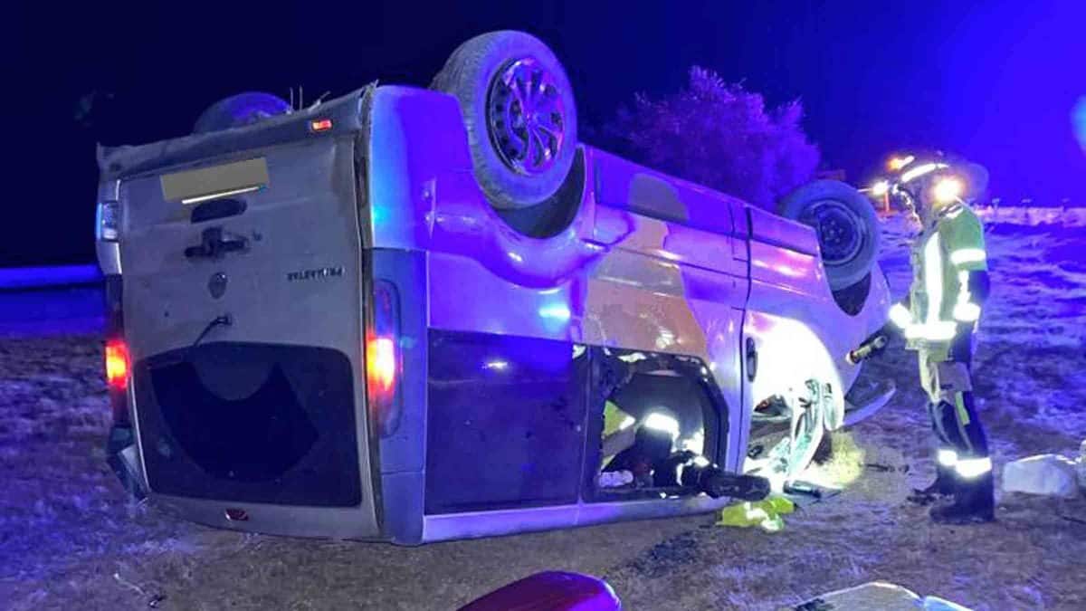 En la madrugada de este sábado, a las 05:15 horas, los bomberos del parque de Santiponce fueron alertados por un grave accidente de tráfico en la A-66, en Gerena, en dirección a Sevilla. Una furgoneta sufrió una salida de vía y volcó, dejando atrapados a sus 4 ocupantes, dos de ellos menores.