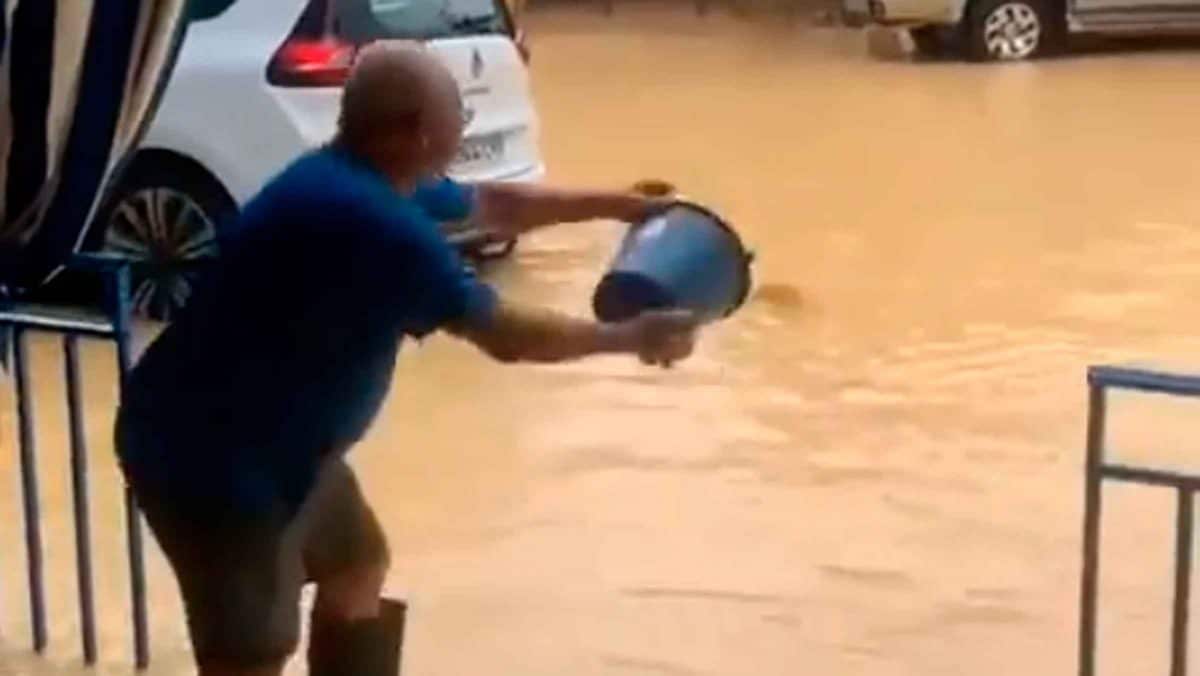 El recinto ferial guillenero ha quedado completamente inundado y algunos han preferido tomárselo con un humor, poniéndole buena cara al mal tiempo. Uno de los vídeo que se han hecho virales en Twitter es el de un señor que, a modo de broma, es visto intentando achicar el agua de su caseta con un pequeño cubo de agua.