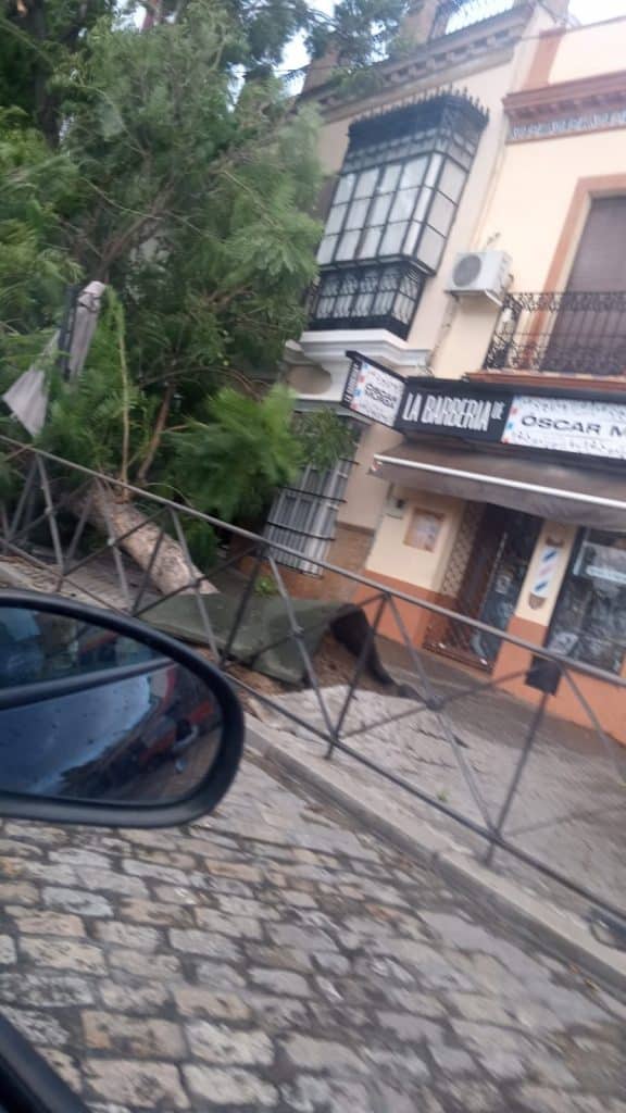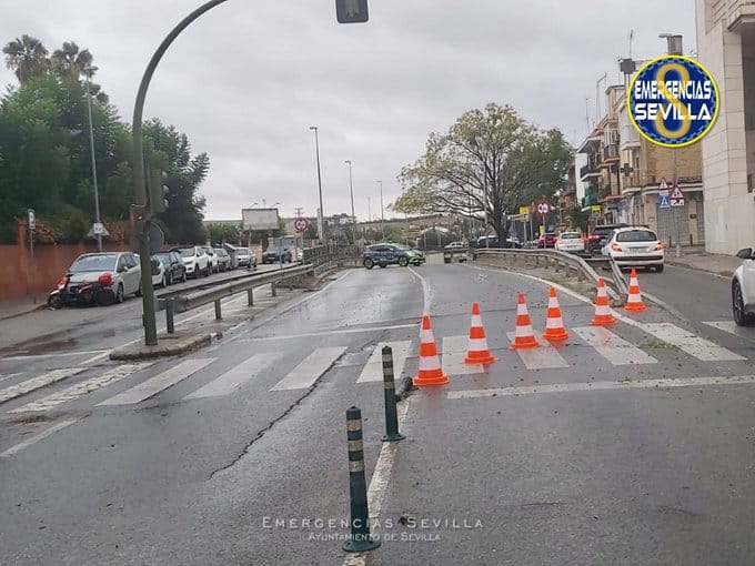 El paso subterráneo desde Av. de Jerez Bellavista hacia la carretera A-8032 de Dos Hermanas ha estado temporalmente cerrado por acumulación de agua. Momento mas tarde, un árbol de grandes dimensiones se ha caído y ha provocado el corte de parte de la Avenida Luis Montoto.