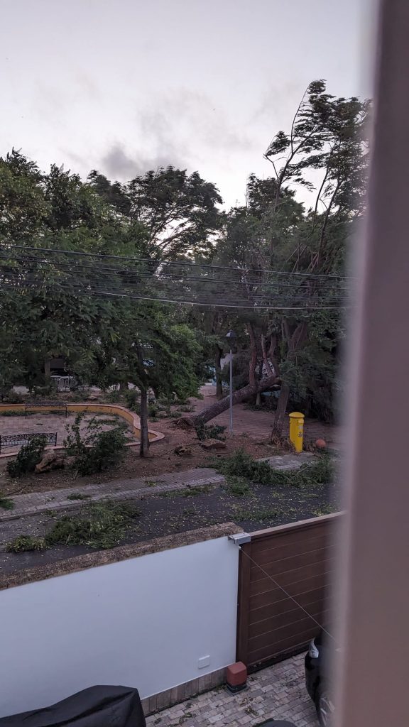 En la capital hispalense, la jornada ha empezado con algunas gotas pero poco viento, pudiéndose incluso celebrar la carrera popular del Casco Antiguo. Ha sido a partir de las 15:00 horas cuando Bernard se ha desatado.