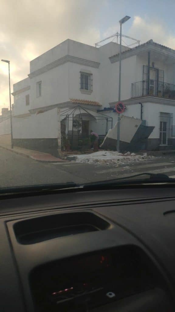 El municipio sevillano de Utrera está siendo gravemente afectado por la borrasca Bernard. En prácticamente toda la ciudad se pueden ver árboles arrancados, toldos desprendidos e incluso paredes derribadas.