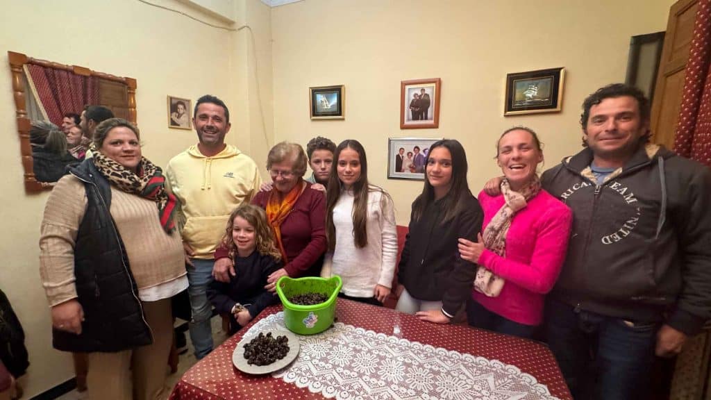 Pero su nieto José Antonio, de momento el más pequeño, dice que apunta maneras y que «le encantan las aceitunas prietas». Lo cierto es que María Jesús representa a una generación para la que el campo era suministro de alimentos y alivio de la economía familiar. Ella tiene siempre en su congelador aceitunas para aliñar todo el año, al igual que guarda tagarninas, espárragos y cardillos, manteniendo recetas en su cocina que han saltado de generación en generación.