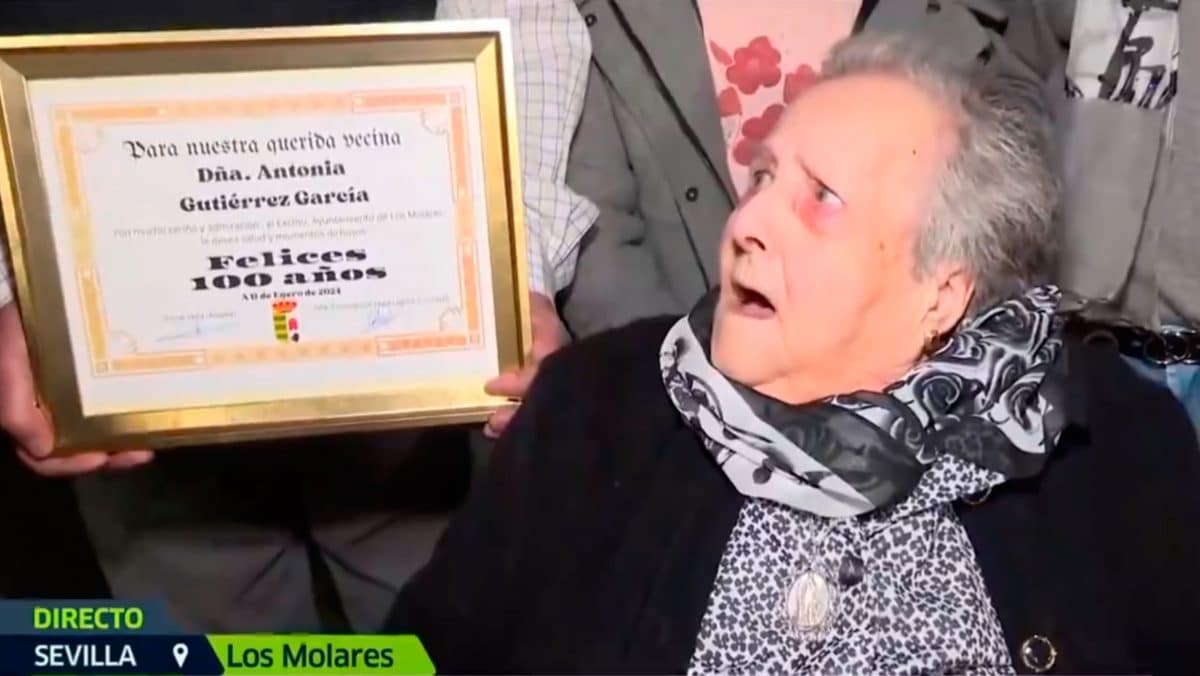 El jueves, 11 de enero, fue un día especial para Los Molares (Sevilla) porque una de sus vecinas, Antonia Gutiérrez García, cumplía cien años. La anciana, a través de un vídeo, pidió como regalo una visita de Canal Sur «para que me vea la gente que estoy vivita».