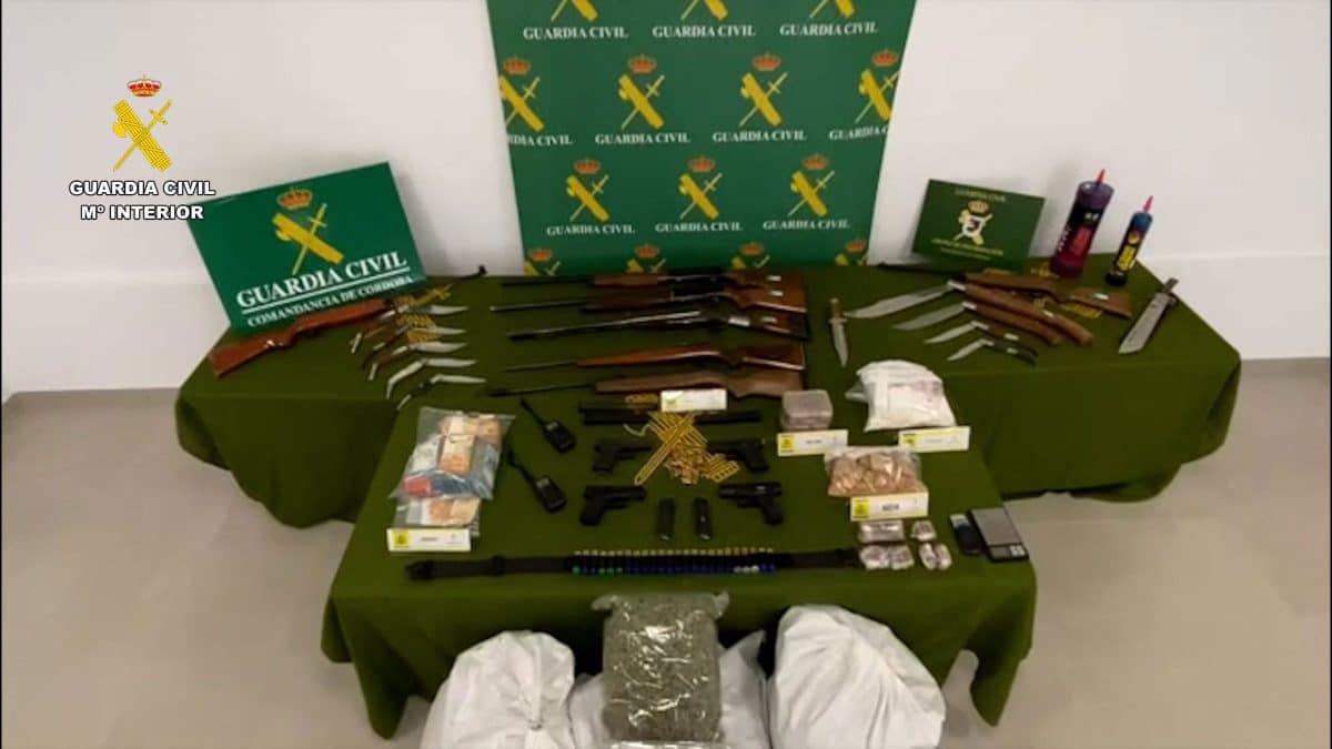 La Guardia Civil ha dado por desarticulada una presunta organización criminal dedicada al tráfico de armas y narcotráfico en las provincias de Córdoba y Sevilla tras practicar once detenciones de personas acusadas de supuestos delitos de tenencia ilícita de armas, depósito de armas de guerra, contra la salud pública, pertenencia a organización criminal, blanqueo de capitales y defraudación de fluido eléctrico.