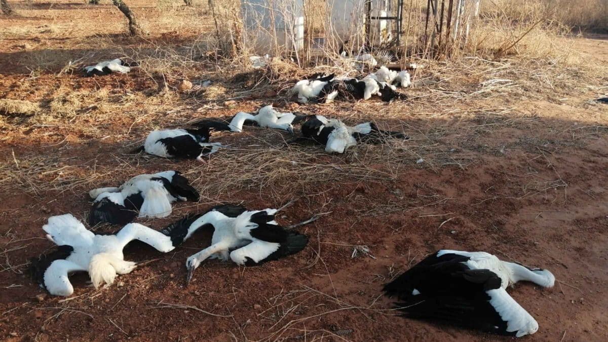 17 cigüeñas blancas muertas debajo de un transformador eléctrico en Puebla de Cazalla (Sevilla)