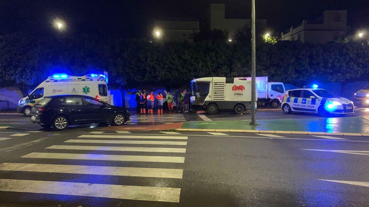 En el lugar de los hechos están actuando la Policía Local de Utrera, la Guardia Civil, el 061 y lo servicios de limpieza municipales, encargados de retirar los restos del mobiliario urbano afectado por el suceso.
