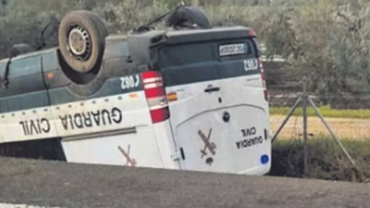 Un furgón de la Guardia Civil volcó este jueves en la A-92, a la altura de Carmona, debido a las adversas condiciones meteorológicas provocadas por el temporal. El vehículo, utilizado habitualmente para el transporte de detenidos, perdió el control en plena tormenta, saliéndose de la vía y quedando volcado en la cuneta junto a un olivar. Los dos agentes que iban a bordo sufrieron heridas leves y lograron salir del vehículo por su propio pie.