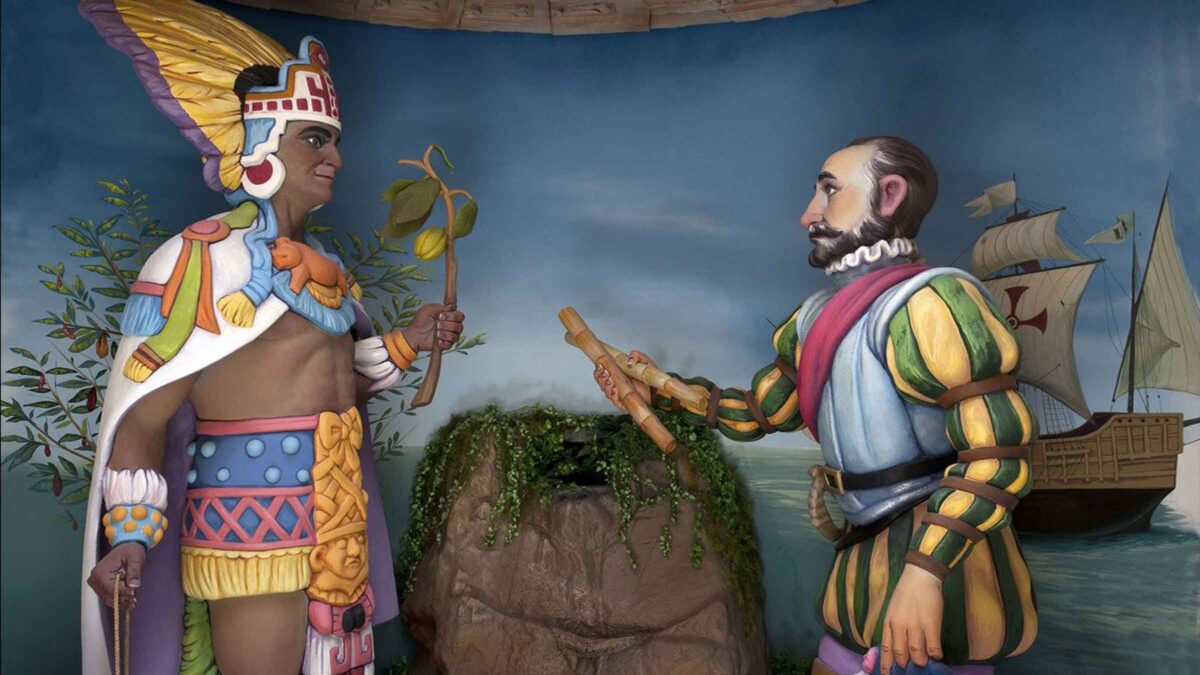 Dentro, el visitante recorre 13 salas temáticas —o 15, según se mire— que combinan historia, arte y tecnología. Hay esculturas, ambientaciones, figuras mayas y aztecas, una recreación de la llegada del cacao a Europa, vitrinas con utensilios históricos, moldes de barro, envases antiguos y hasta publicidad retro de marcas hoy desaparecidas.