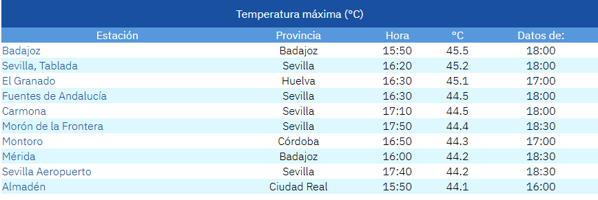 La ola de calor, que también ha afectado a otras provincias andaluzas y extremeñas, sitúa a Sevilla en el centro de la atención meteorológica nacional. Con valores que rozan o superan ampliamente los 44ºC en varias localidades, la sensación térmica ha sido aún más elevada, obligando a extremar las precauciones ante la exposición prolongada al sol.