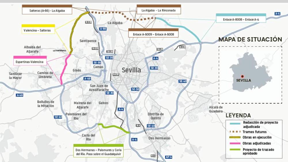 - El contrato para las obras del tramo Espartinas–Valencina ha sido recientemente adjudicado.
