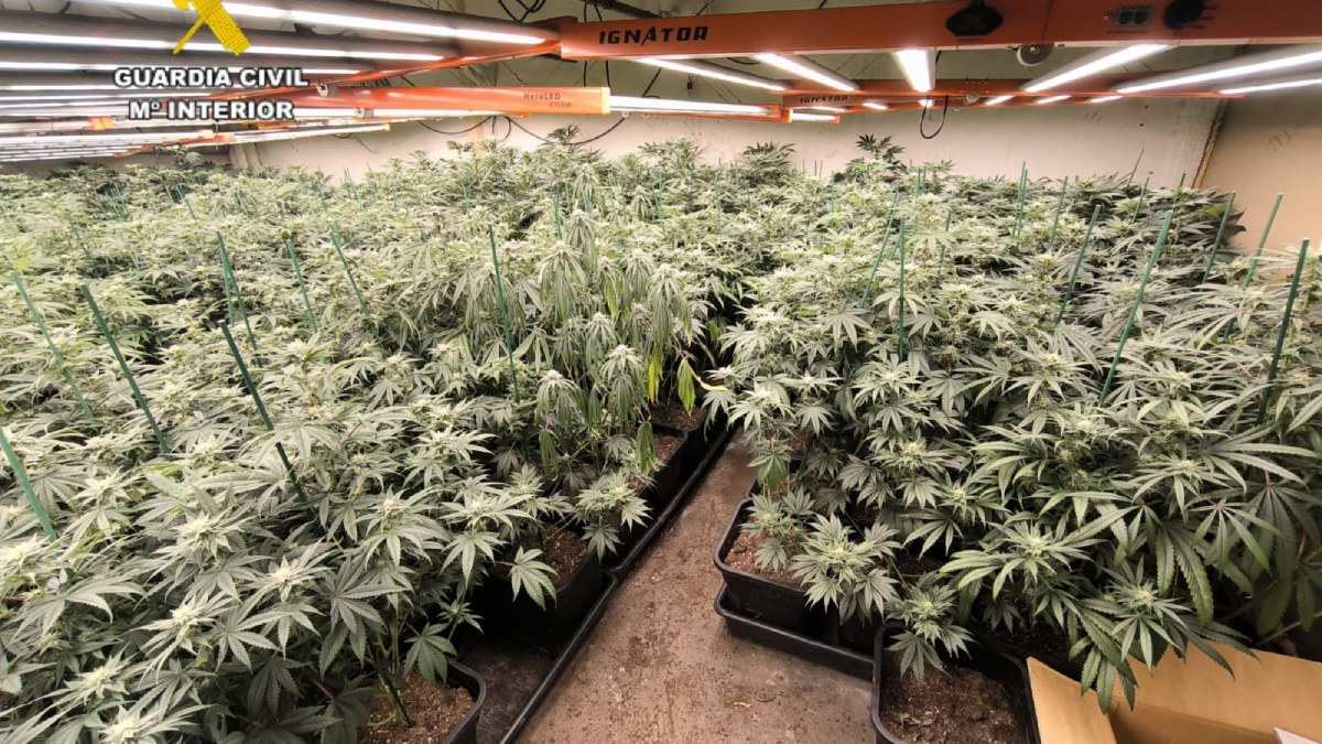 Tras solicitar la entrada y registro, los guardias civiles localizaron dos grandes salas ocultas dentro de la nave, equipadas con un avanzado sistema de videovigilancia. En el interior se incautaron 1120 plantas de marihuana en su punto óptimo de crecimiento, además de material para su cultivo y un vehículo utilizado por el grupo criminal.