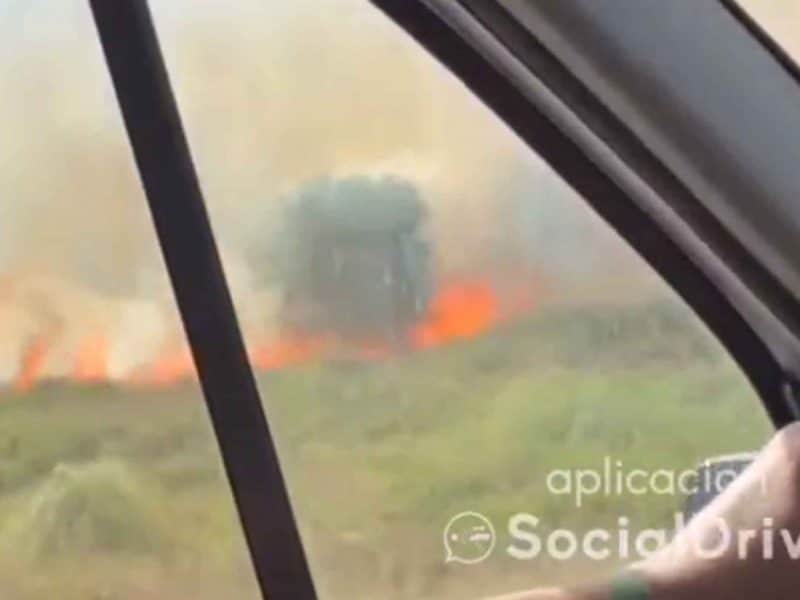 Arde un coche en el arcén y el fuego se extiende por el campo en Coria del Río