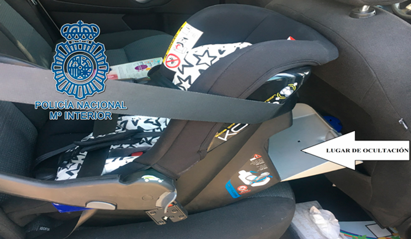 En en uno de estos viajes en el que se le ha localizado una roca de cocaína de 600 gramos, oculta en la silla de bebé del coche. La cantidad intervenida vendría destinada a surtir distintos puntos de venta de la ciudad.