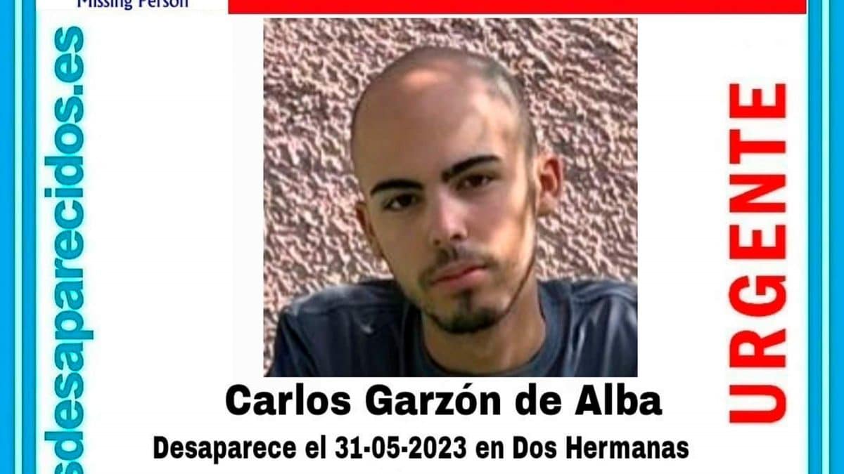 Ha desaparecido en la localidad sevillana de Dos Hermanas Carlos Garzón de Alba, un joven de 19 años que fue visto por última vez el pasado miércoles 31 de mayo de 2023. La desaparición la ha comunicado a través de sus redes sociales la asociación SOS Desaparecidos, que ha proporcionado una foto del desaparecido además de dos teléfonos de contacto y un email por si algún ciudadanos supiese algo de Carlos.