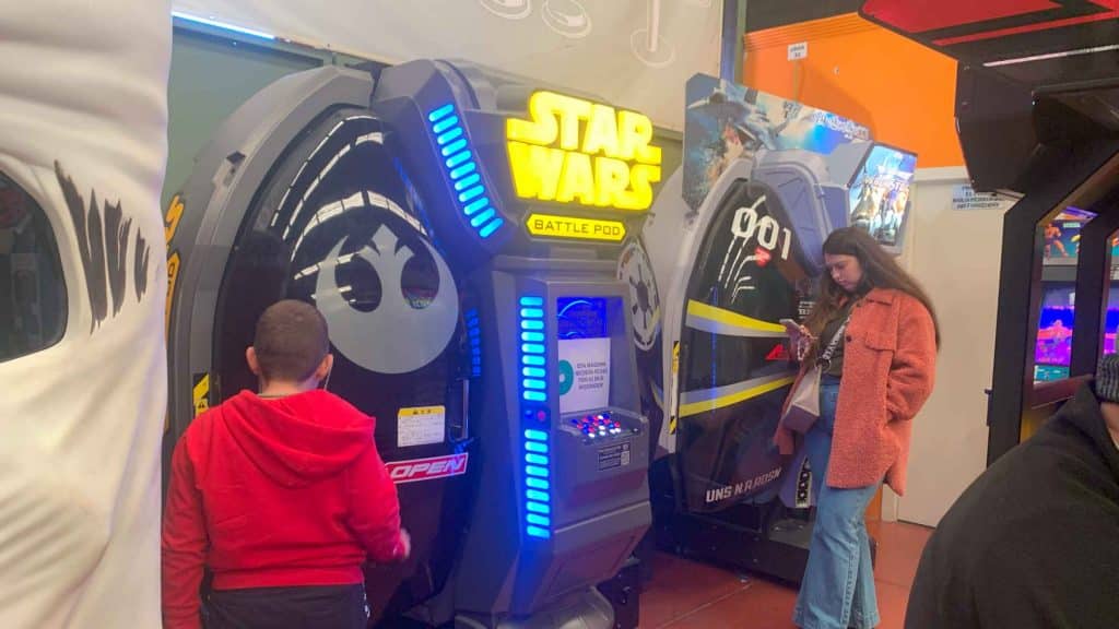 Algunas de las cabinas más curiosas son Star Wars Battle Pod, un simulador de Ala X de realidad aumentada en la que ofrece ponerse a los mandos de una de estas famosas naves de La Guerra de las Galaxias, o Densha de Go!, una máquina que recrea una cabina de tren totalmente funcional. Pero la selección no se queda ahí, Tekken, Metal Slug, Time Crisis, Street Fighter e incluso Mario Kart son algunos de los muebles que se pueden ver en Arcade Planet. En su página web está el listado completo.