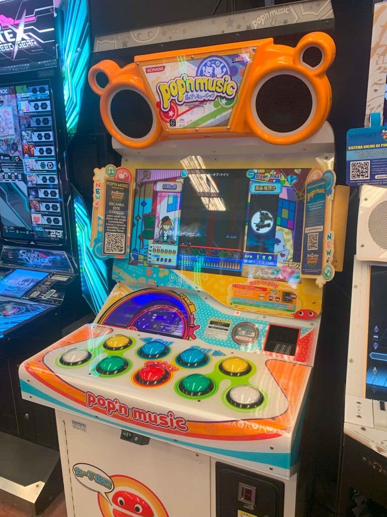 Una de las zonas más curiosas del salón es el área reservada para los juegos musicales, títulos que en su gran mayoría no han salido siquiera de Japón. Nombres como Chunithm Mai Mai o Crossbeat. La peculiaridad de estos juegos musicales es que las puntuaciones se suben a Internet, por lo que Arcade Planet tiene una serie de clientes habituales que acuden al salón exclusivamente para luchar por los récords. «Poco a poco estamos montando una comunidad de jugadores alrededor de estos títulos. Hoy ha venido un chico de Málaga que viene una vez al mes. Coge el tren por la mañana, se queda hasta las 21:00, se queda a dormir, mañana vuelve otra vez y se va por la tarde» comenta Juan Diego.