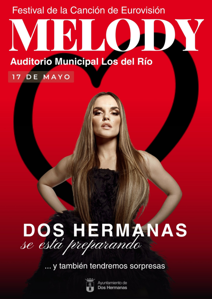 El próximo 17 de mayo, los vecinos y vecinas de Dos Hermanas tendrán una cita muy especial: podrán seguir en directo la gran final de Eurovisión 2025 desde el Auditorio Municipal Los del Río, en una jornada organizada para apoyar a Melody, la artista lcoal que representará a España en el festival.