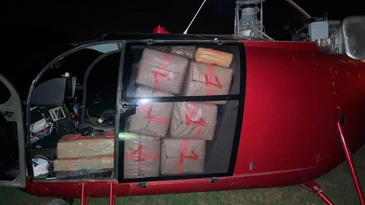 El helicóptero transportaba una carga de 30 fardos de hachís que arrojaron un peso de 795 kilogramos, en cuyo interior también se incautaron varios dispositivos de navegación y terminales móviles. Asimismo se aprehendieron en el lugar de los hechos tres vehículos de los utilizados por la organización.