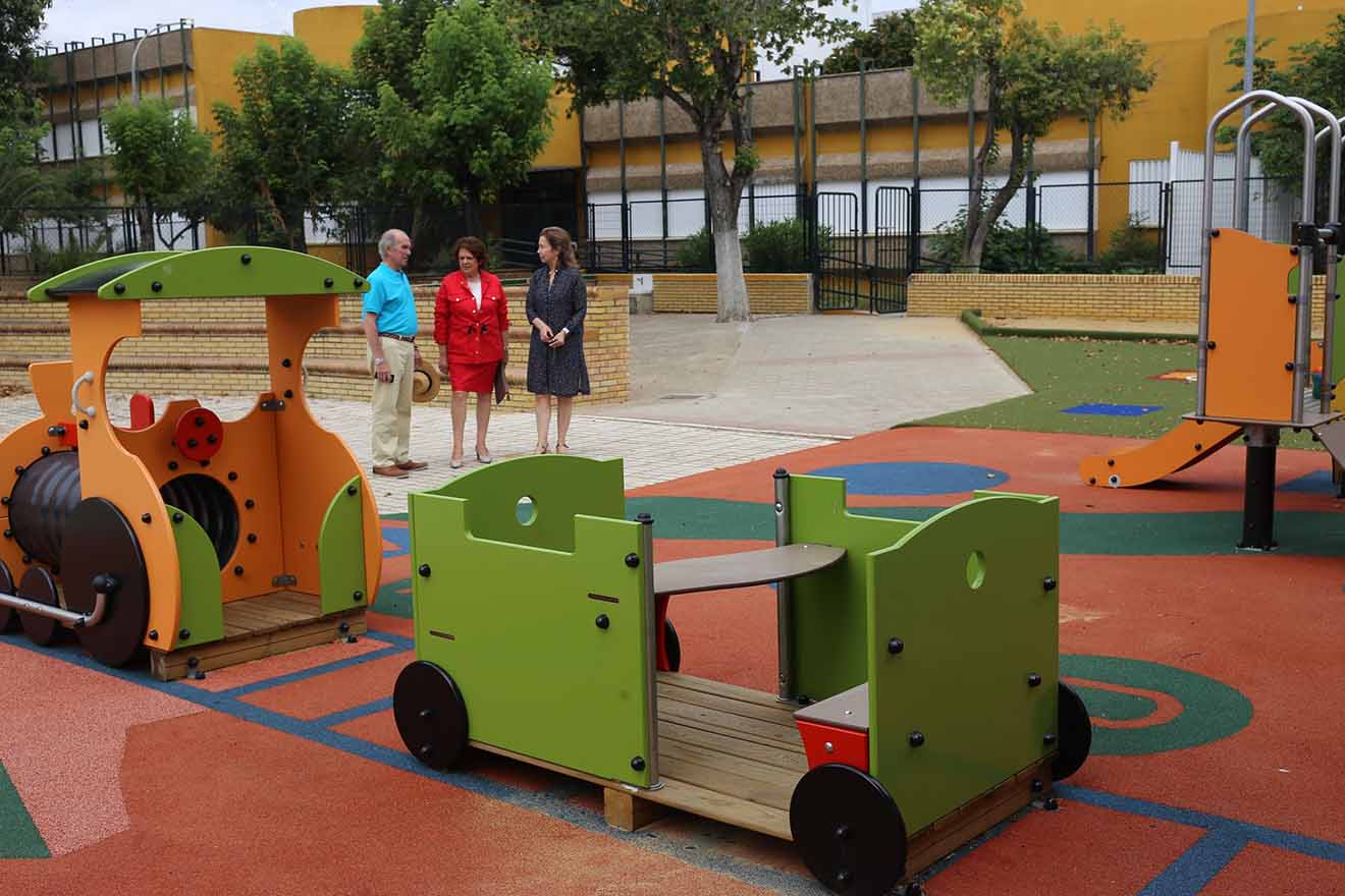 En el caso del CEIP Juan Ramón Jiménez, se ha instalado una nueva zona de juegos para los más pequeños, que está conformada por tobogán, locomotora y vagón con asientos y mesa. El proyecto ha contado con un presupuesto total de 21.939 euros, y se agrega a otras mejoras afrontadas en los últimos tres años por la Delegación de Educación, Participación Ciudadana y Edificios Municipales y el Distrito en el centro educativo, como la instalación de una nueva calefacción, la sustitución de ventanas, persianas y carpinterías para contribuir a la eficiencia energética y la reforma de los acerados exteriores para una mejor accesibilidad.