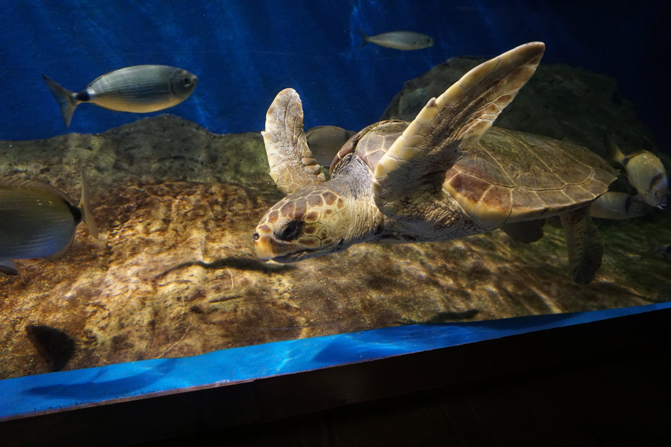 La tortuga marina (Caretta caretta) que el 17 de agosto de 2017 apareció varada en la playa de la Alcaidesa, a la altura del faro de La Línea de la Concepción, con una gravísima herida en el caparazón, se recupera en las aguas del Acuario de Sevilla a la espera de ser devuelta al mar.
