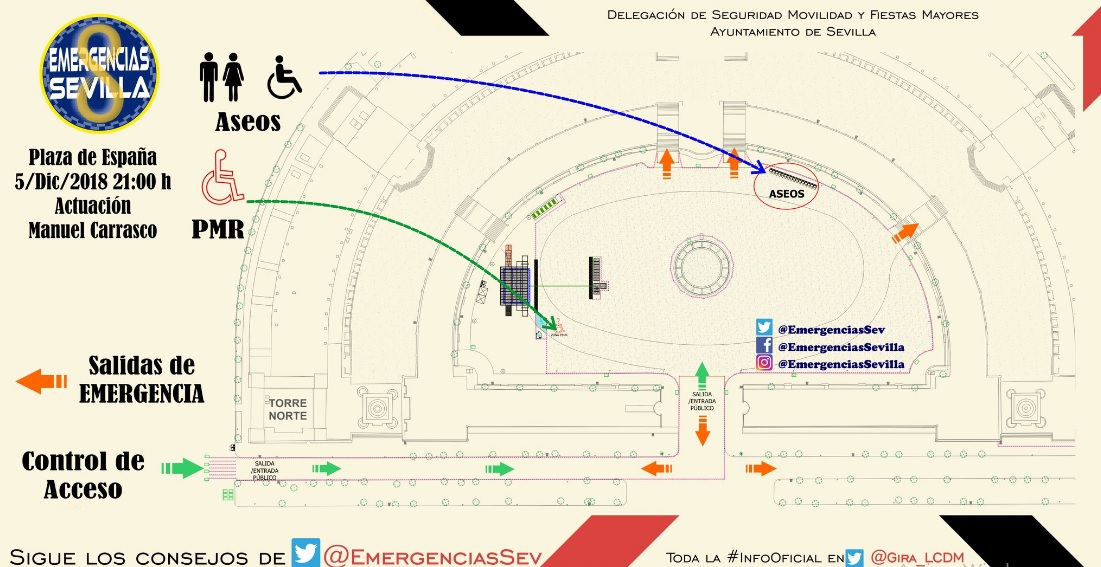 Las autoridades ya trabajan para el concierto sorpresa que prepara el artista Manuel Carrasco en Plaza España. El evento, de carácter gratuito, tendrá un aforo limitado para 18.000 personas y comenzará a las 21.00 horas.