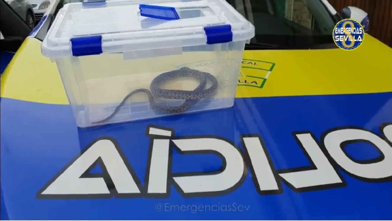 La Policía Local de Sevilla ha rescatado una serpiente de 1,5 metros de longitud en el balcón de una vivienda de Sevilla. El propietario, al percatarse de la presencia del reptil, avisó a los servicios de emergencias. El suceso ha ocurrido en la calle Voluntad de la capital.