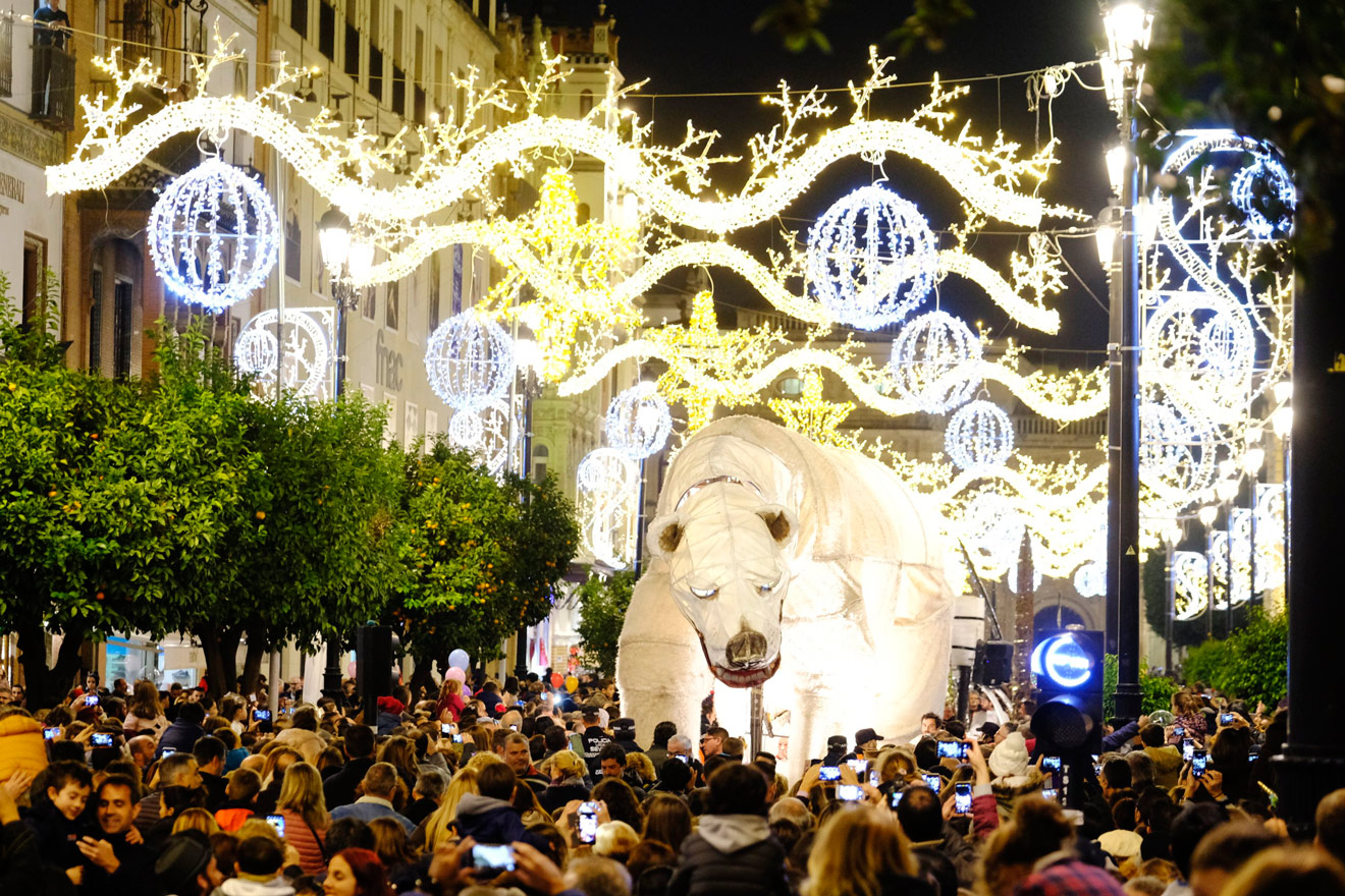A pesar de que el invierno no está siendo demasiado frío, estos osos polares han apostado por formar parte de la Navidad sevillana y deleitar a los viandantes con su gélido paseo. Con mucha expectación, móviles inmortalizando el momento y niños disfrutando de la sorpresa, el espectáculo se desarrolló desde Plaza Nueva hasta el Archivo de Indias.